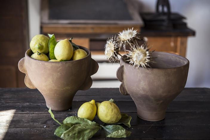 Formed from organic materials, Quatre-Saisons features auburn-colored stoneware that has been handmade into a celestial piece to add depth and character to its surroundings. Rounded half-moon corners give detail to its natural shape. It serves as a decorative element to admire and will enhance the look of interior spaces with its rustic beauty.